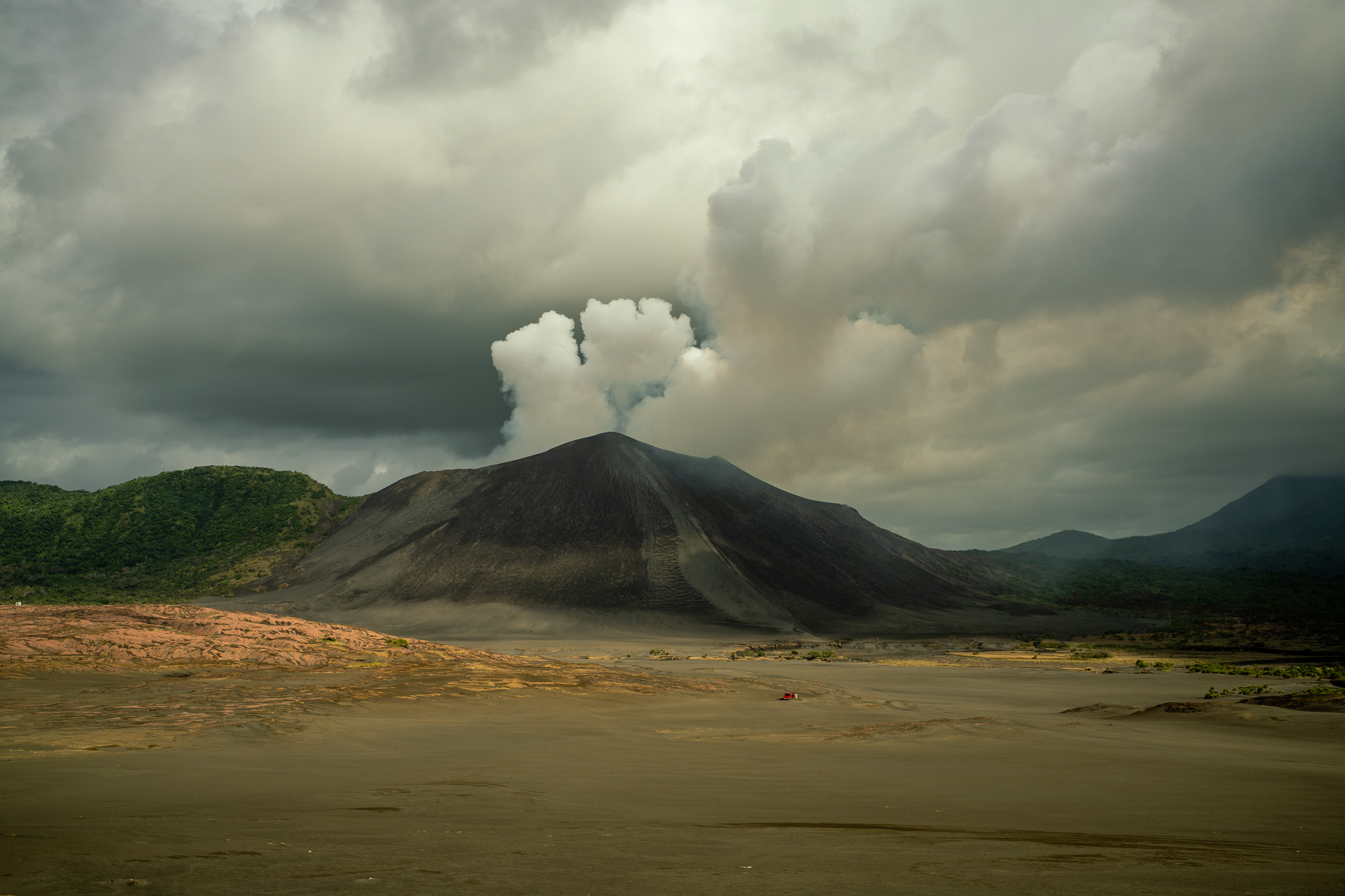 森を抜けると突然、黒い火山灰の荒野が広がる。空気は硫黄の匂いを帯び、地鳴りが足元から伝わる。その先に姿を現すヤスール火山は、まさに「島の神秘」と呼ぶにふさわしい畏怖を感じさせる。