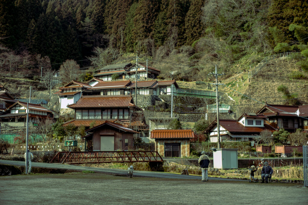 同時に進行したのが、空き家の増加と生活の痕跡の消失だ。 窓に灯りがともらなくなり、洗濯物が揺れなくなり、 庭や畑から人の気配が消えていく。 集落は地図上に存在していても、 そこからは暮らしの存在感が徐々に失われていった。