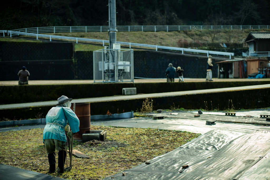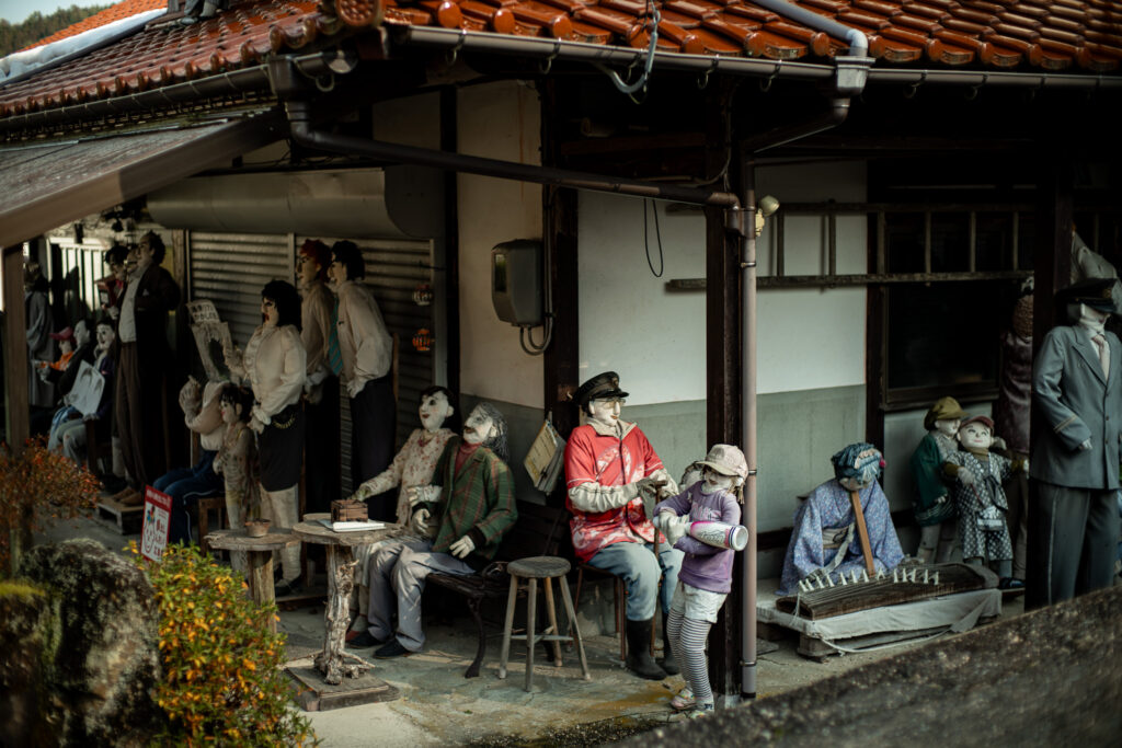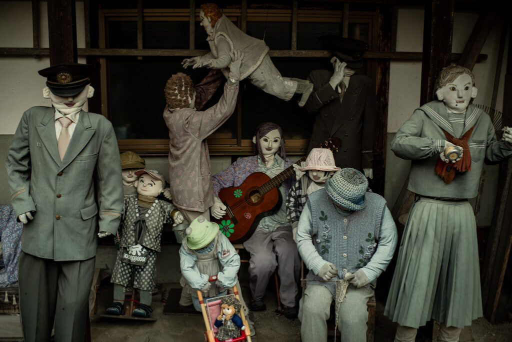人が減り、作業の音が消え、家屋が空いていくなかで、 かかしは無言のまま集落の風景を人のものとして留め続ける。 それは、外部から訪れた者に対しても、 「ここは完全に捨てられた場所ではない」というメッセージを発しているかのようだ。