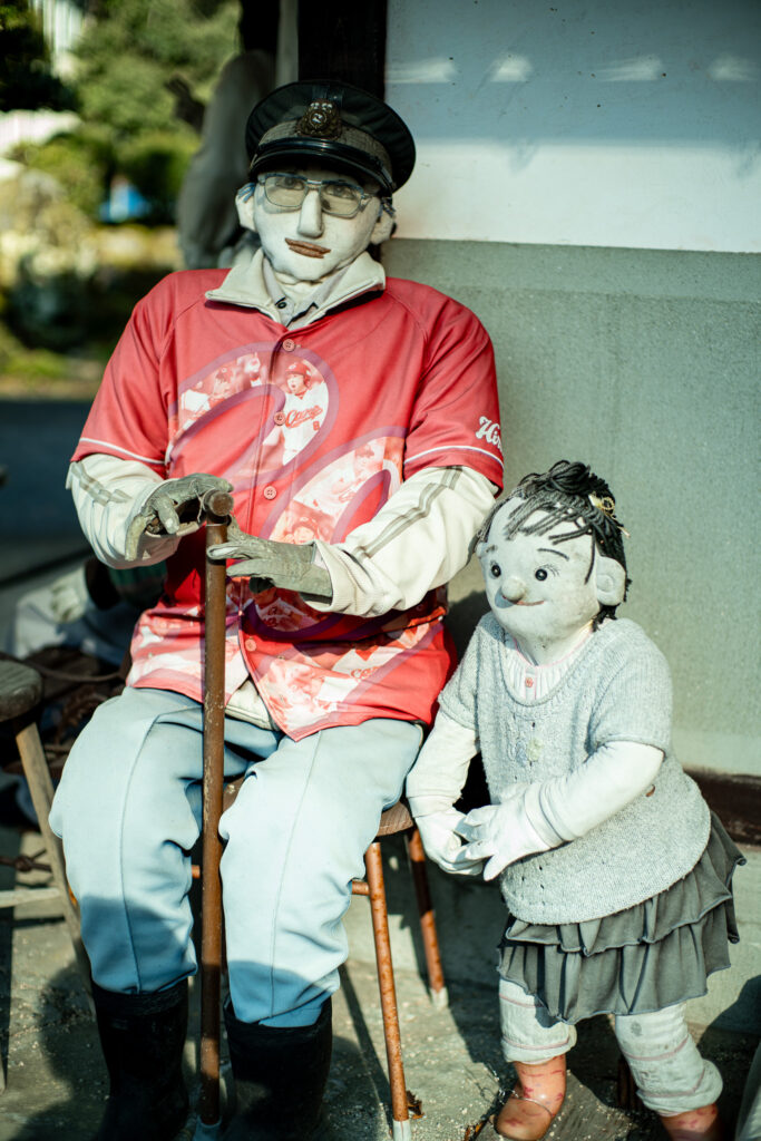 中には、実在した住民をモデルにしたかかしも少なくない。 すでに亡くなった人、町を離れた人、 かつてその場所で暮らしていた誰か。 かかしは、記憶の中の住民を風景の中に留める役割を担うようになる。
