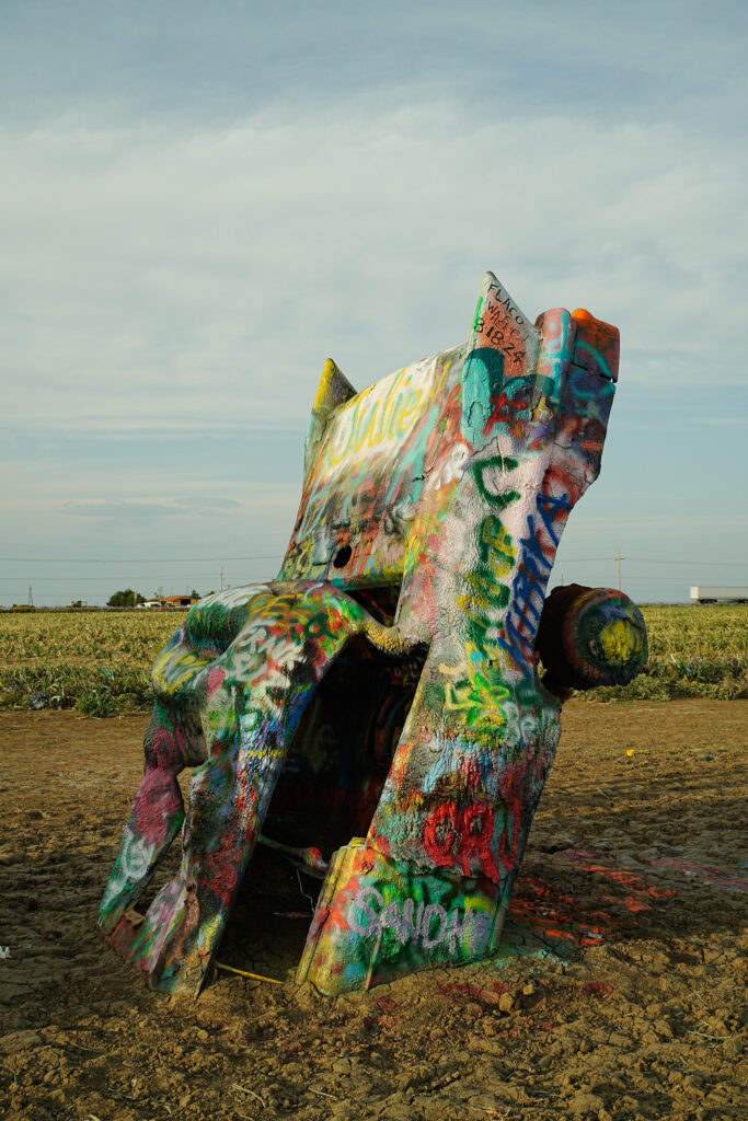 さらに言えば、スプレーペイントによる落書きも黙認されている。色が塗られ、剥がれ、また塗られる。キャデラックランチは固定された作品ではない。時間と人の手で上書きされ続ける、終わらないアートなのだ。完成しないからこそ、50年近くも生き延びてきた──そう考えると、この奇妙な歴史にも妙に納得がいく。