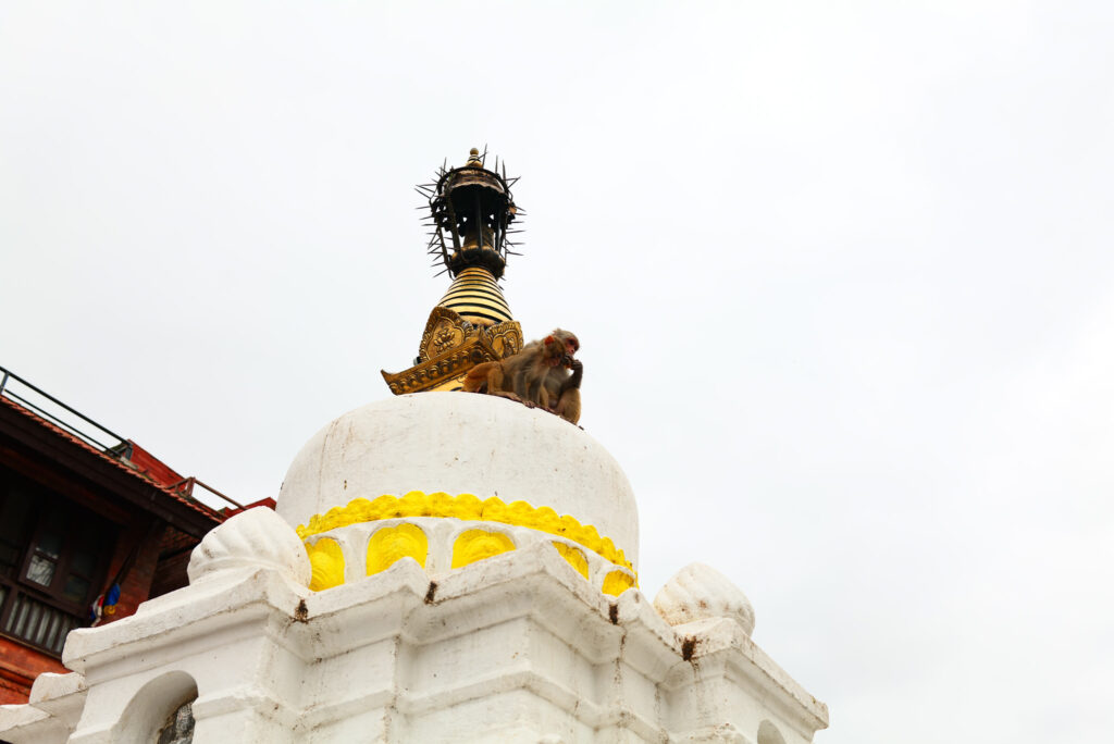 サルがこれほどまでに集まる理由の一つは、仏教的背景にある「生き物を排除しない思想」だ。 スワヤンブナートでは、人間の都合によって動物を締め出すという発想がほとんど存在しない。 ここは人間だけの聖地ではなく、あらゆる生命が共存する場と考えられてきた。