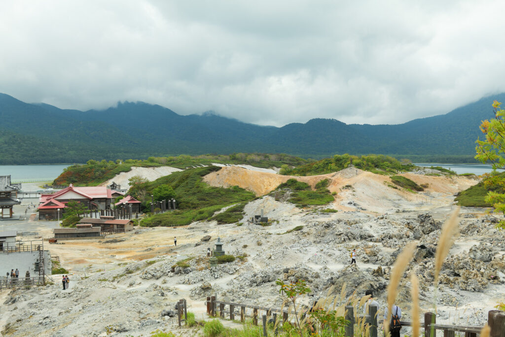 恐山の地獄谷は、煮えたぎるような噴気が立ち上り、まさに地獄絵図を現世に投影したような光景である。