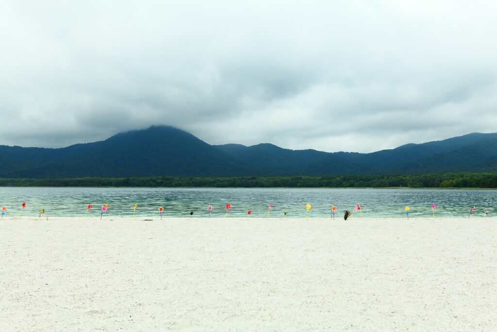 一方、極楽浜と呼ばれる一帯は、白砂と静かな湖水に包まれ、浄土のような安らぎを感じさせる。