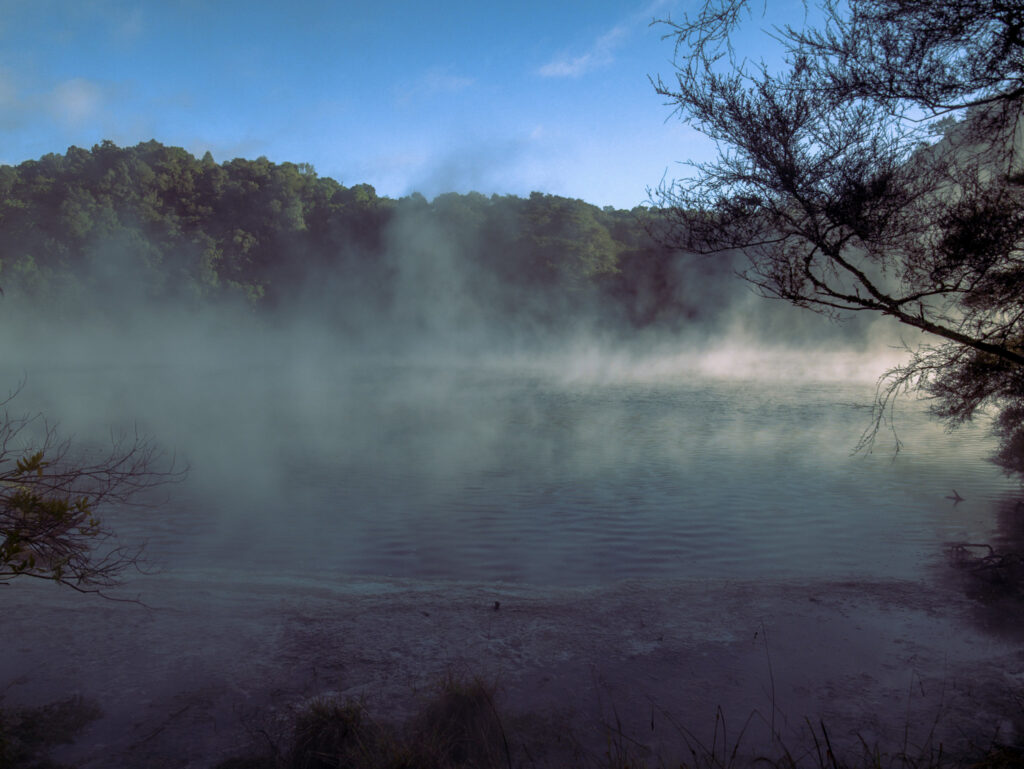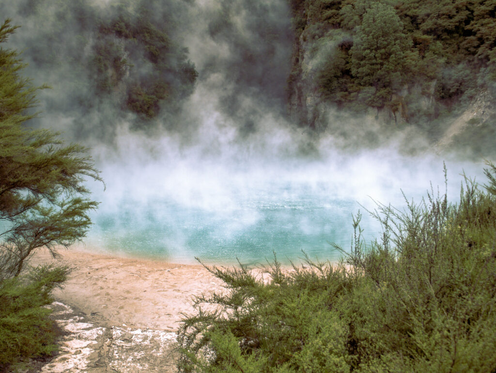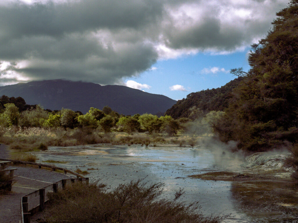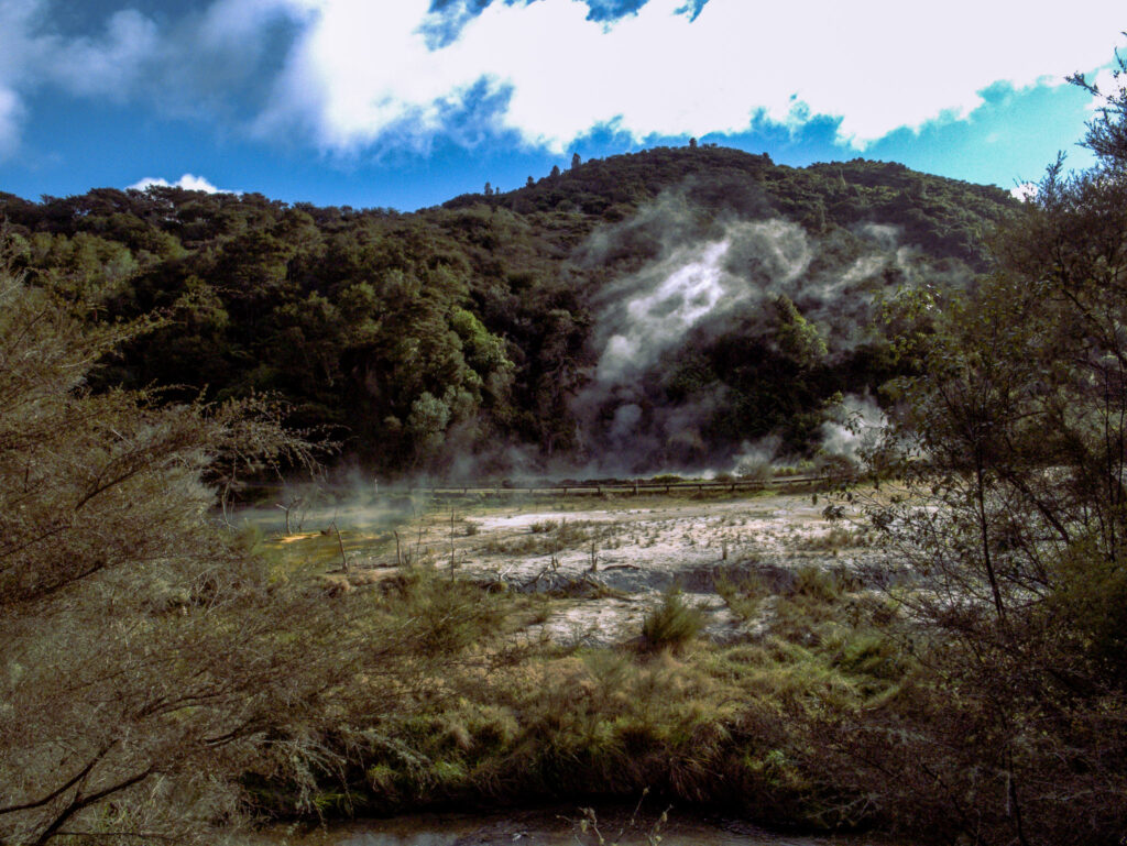 ロトルアには、地熱地帯特有のリスクが存在する。
